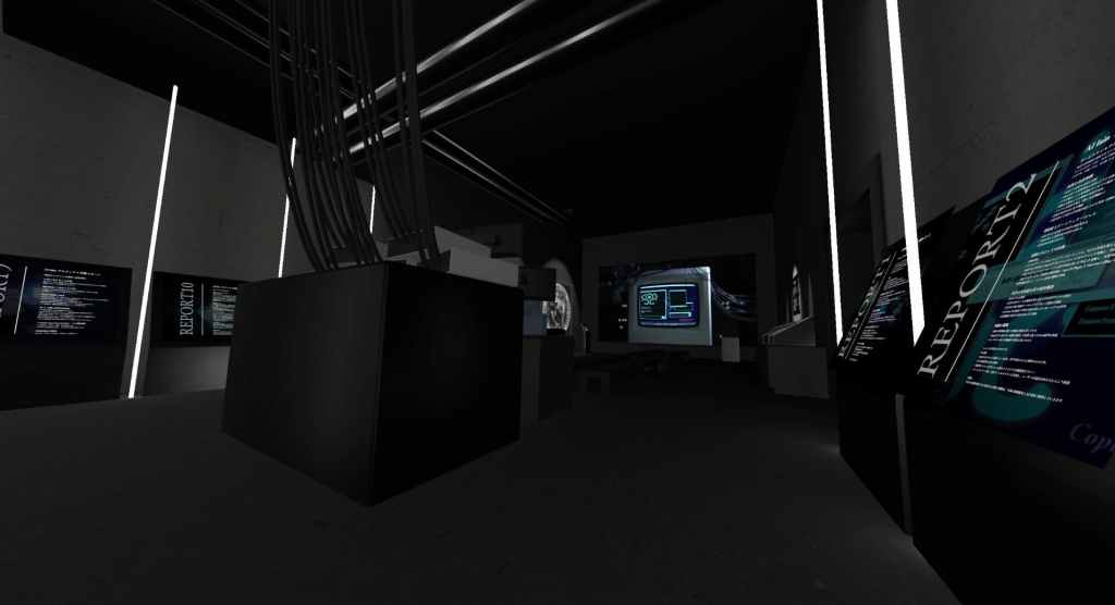 During the second wave of updates to the exhibit, the AI Lain Report Room was added. This room featured a large computer setup in the center of the room, with the walls covered in exhibits in a museum-like layout.