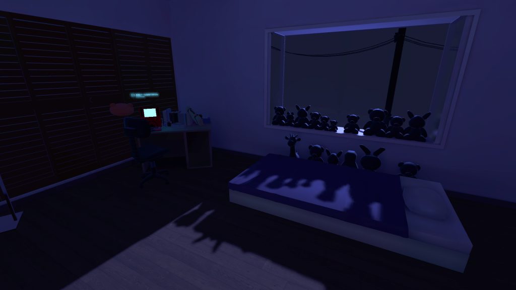 The first area added to the exhibition was Lain’s bedroom, on July 1st at 20:00 JST. It featured Lain’s Navi, bed, plushies, and a number of scattered papers for attendees to interact with.