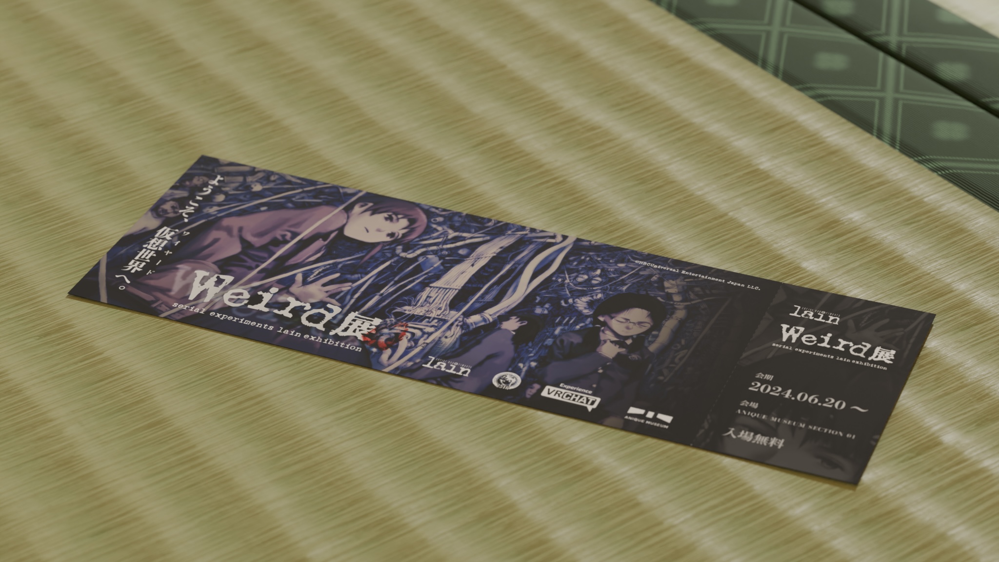 In June of 2024, the Japanese company Anique announced a new project: The “Weird Exhibition” (Japanese: Weird展), a new online-only event themed around Serial Experiments Lain and hosted in the game VRChat.