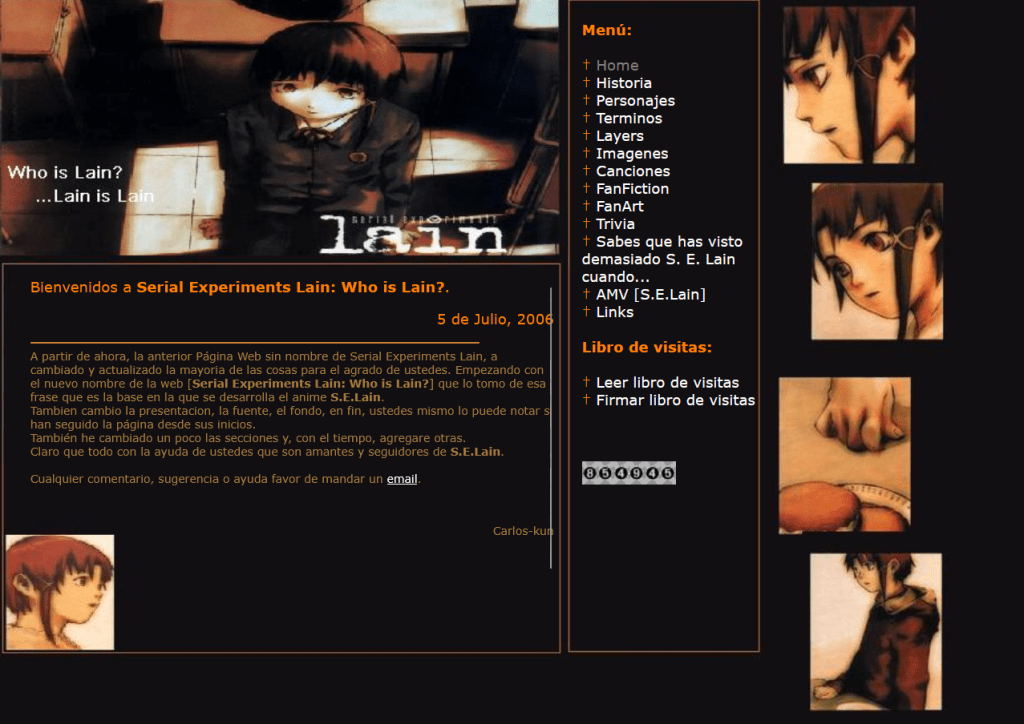 The website seems to have been created by a fan of Lain from Mexico, and has archives that stretch all the way back to 2004. It’s one of the earliest Spanish-speaking Lain fansites that I’ve found so far!