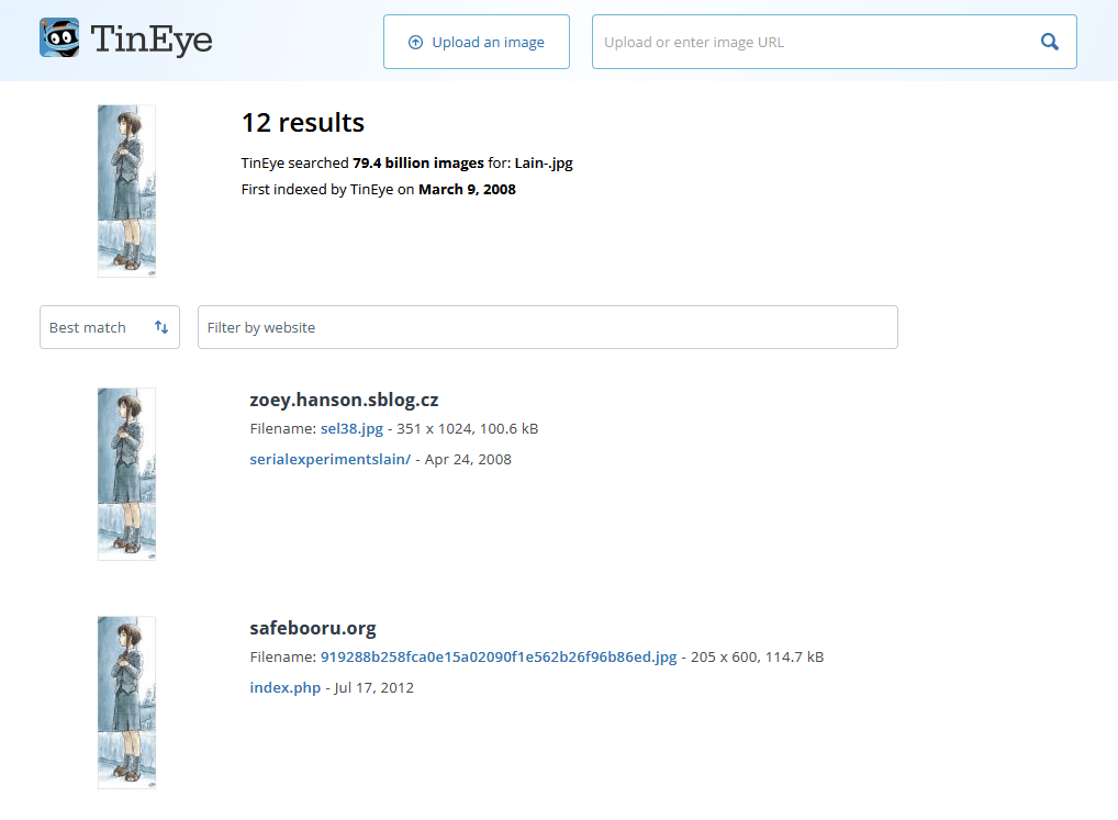 Also, I was in luck – danbooru listed the artist’s name: kobaneko. Unfortunately, the source of the image was incorrect – it linked back to a Russian Lain fansite from the mid-2000’s (lain.ru) instead of kobaneko’s website… but we were getting closer.