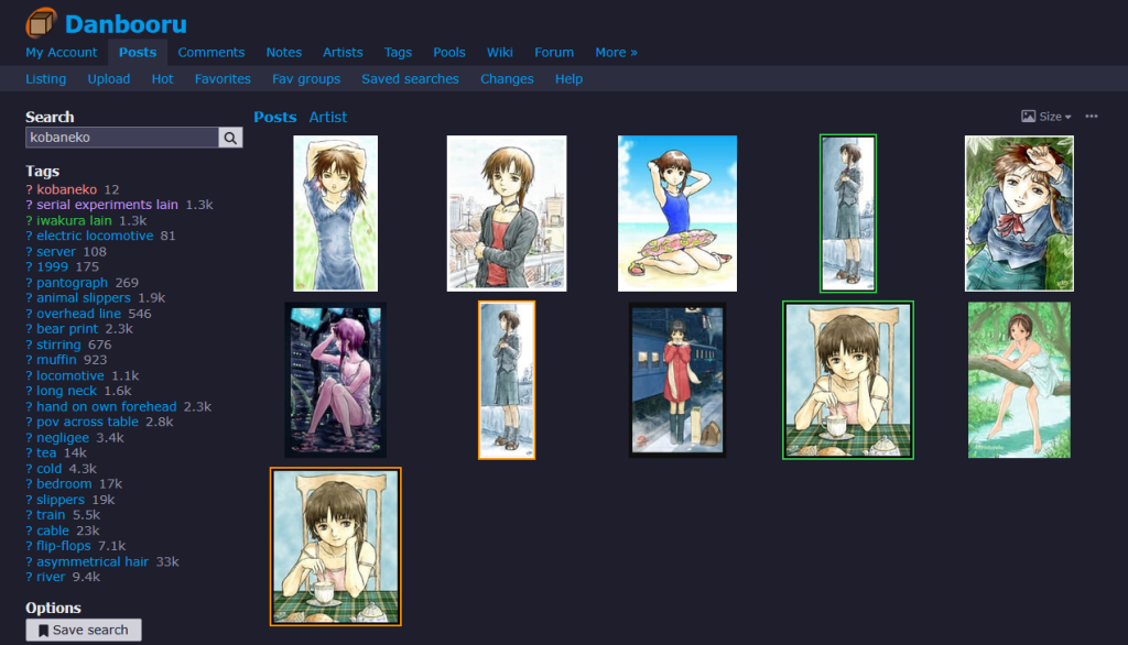 Clicking further through Danbooru, they had 8 total kobaneko images archived, so I decided to look through each of them – and finally got a hit! (I know there are more than 8 images in that screenshot, but that’s because I uploaded a few while working on this blog post…)
