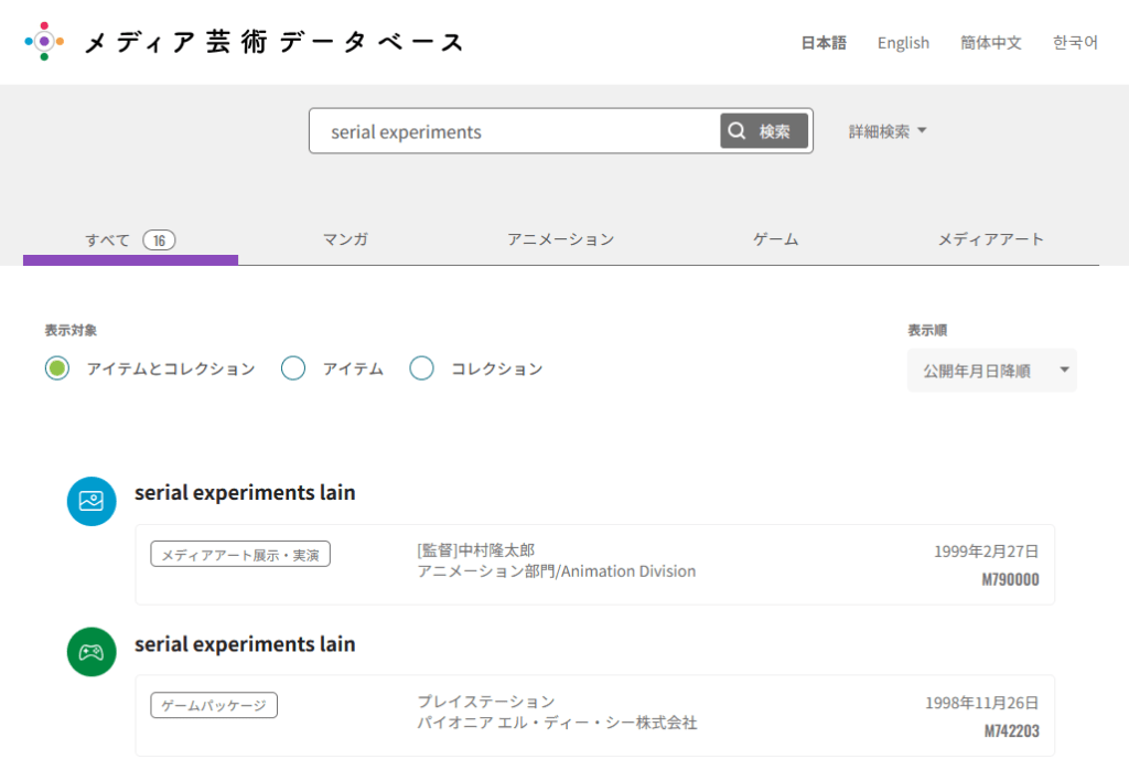 I recently learned about a cool Japanese website: The Media Arts Database! From their own “About” page, this is how they describe the database: