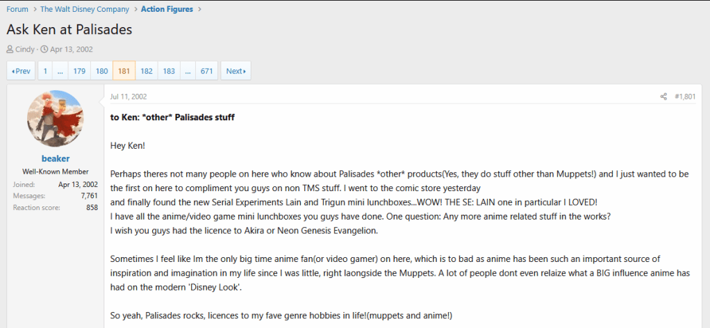 It’s cool to imagine the Palisades mini lunchboxes being available in a local comic store, and it’s fun to see the reactions someone had to them all the way back in 2002. Gives a little bit more context to where and how they were available, and why there are so many floating around these days!